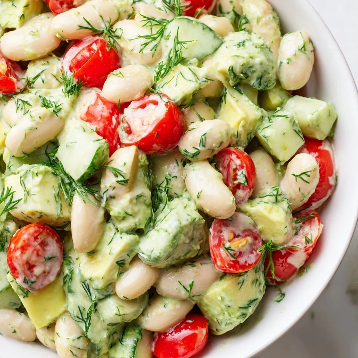 This vibrant bowl combines creamy avocado with tender white beans, crisp vegetables, and aromatic fresh dill. The zesty lemon dressing brings everything together with a bright, tangy finish. Ready in just 20 minutes with no cooking required, it's an ideal choice for quick lunches, light dinners, or impressive entertaining.