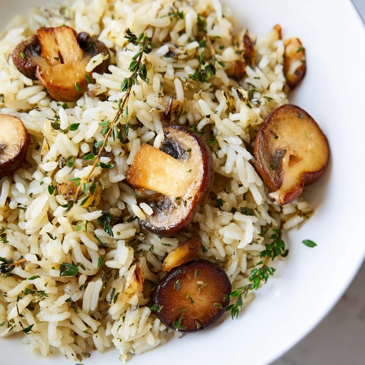 - Fresh thyme: Its earthy notes bridge the gap between the mushrooms and the buttery rice perfectly.