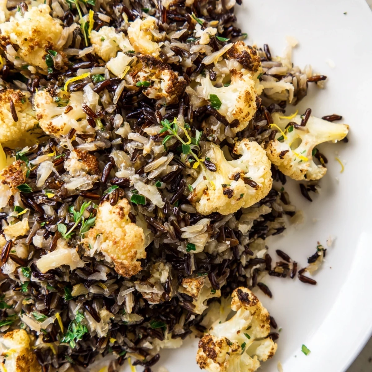 This satisfying wild rice blend combines earthy grains with tender roasted cauliflower florets seasoned with smoked paprika. Fresh aromatics including garlic, shallots, and lemon zest create layers of flavor, while parsley, thyme, and rosemary add brightness. The dish comes together in about an hour with simple roasting and simmering techniques.