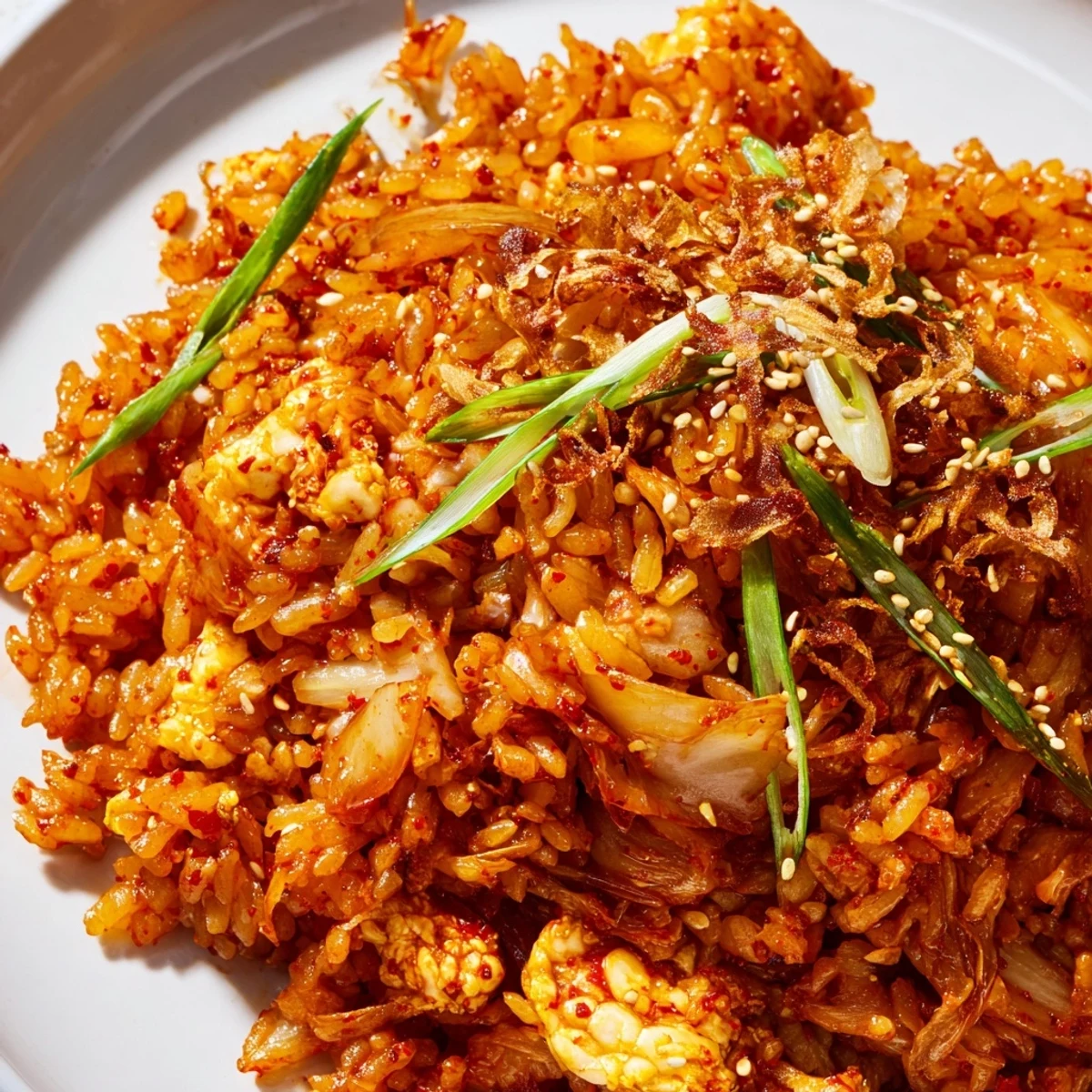 This vibrant fusion dish brings together the tangy kick of fermented kimchi with the addictive crunch of chili crisp oil. Day-old rice gets coated in a savory blend of soy sauce, toasted sesame oil, and reserved kimchi juice, creating caramelized edges and fluffy texture throughout.